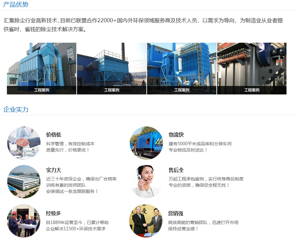 3、采用低壓管噴脈沖除塵器大大的提高了除塵器的清灰能力,防止粉塵粘結(jié)濾料,而增大系統(tǒng)阻力;