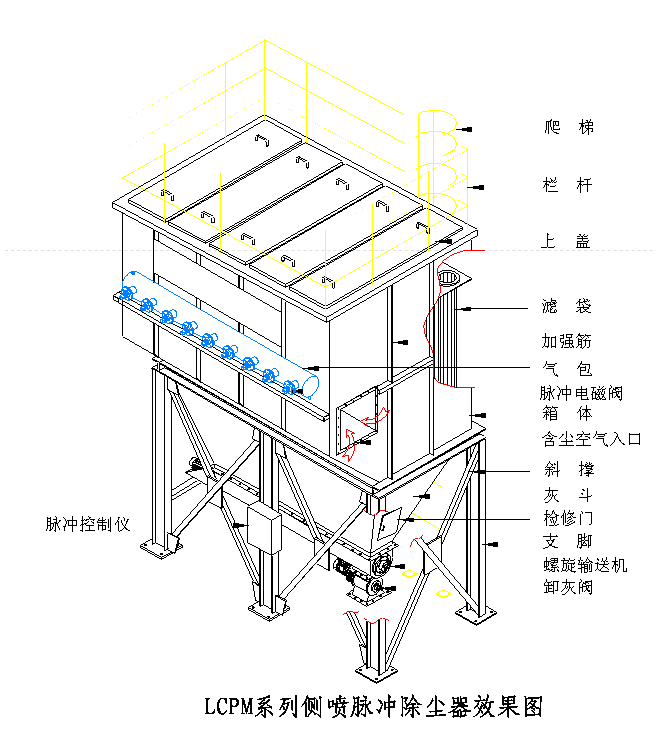 LCPM型分室側噴低壓脈沖布袋除塵器是我公司結合國際先進技術研制開發的具有國內先進水平的低壓側噴式布袋除塵器。廣泛應用于建材、冶金、鑄造、化工、機械、礦山采掘、糧食加工等行業及各工礦企業中工業性粉塵的凈化除塵及粉塵清理與回收。
